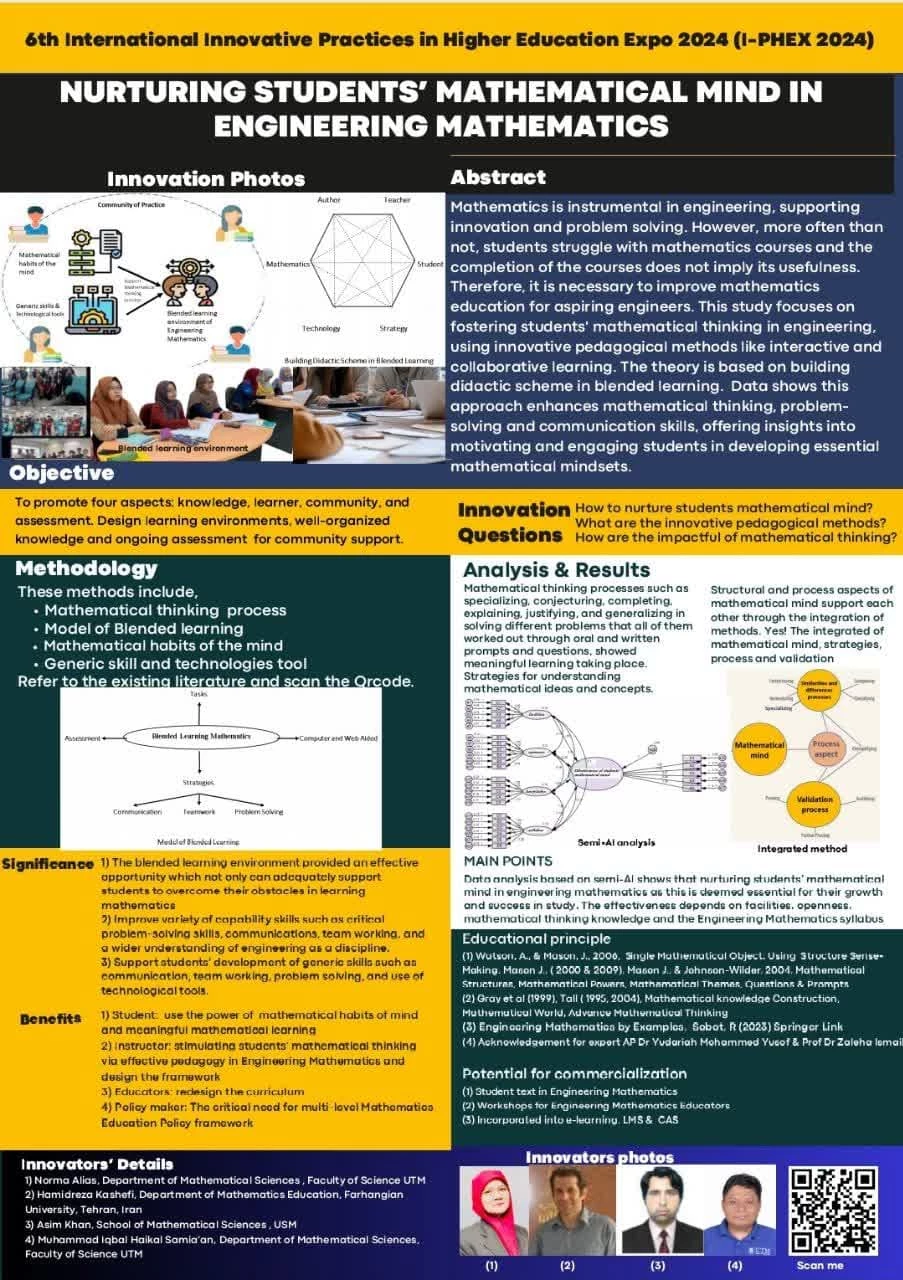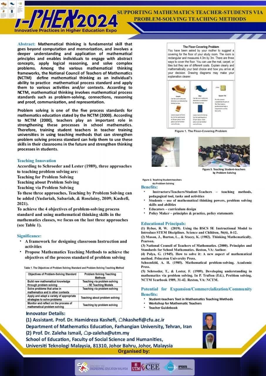 این موفقیت در جریان ششمین نمایشگاه بینالمللی شیوههای نوآورانه در آموزش عالی به دست آمد؛ رویدادی که توسط انجمن آموزش مهندسی دانشگاه علم و صنعت مالزی و با حضور اساتید برجسته و نامآور از سراسر جهان در شهر کوالالامپور برگزار شد. این نمایشگاه، محلی برای تبادل دانش و نوآوریهای آموزشی در سطح بینالمللی است که به شکلی گسترده به مباحث آموزشی نوین در آموزش عالی میپردازد.