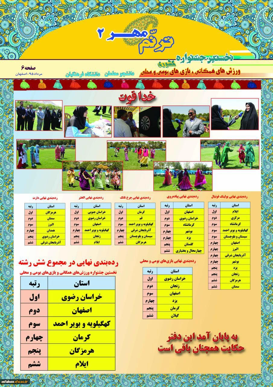 نتایج مسابقات در بخش خواهران