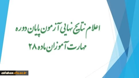اعلام نتایج نهایی آزمون پایان دوره مهارت آموزان ماده 28درسایت معاونت نظارت ،ارزیابی و تضمین کیفیت