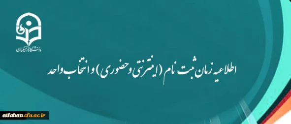 اطلاعیه زمان ثبت نام (اینترنتی و حضوری) و انتخاب واحد