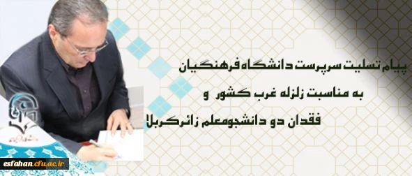 پیام تسلیت سرپرست دانشگاه فرهنگیان درپی زلزله غرب کشور و فقدان دو دانشجومعلم زائرکربلا