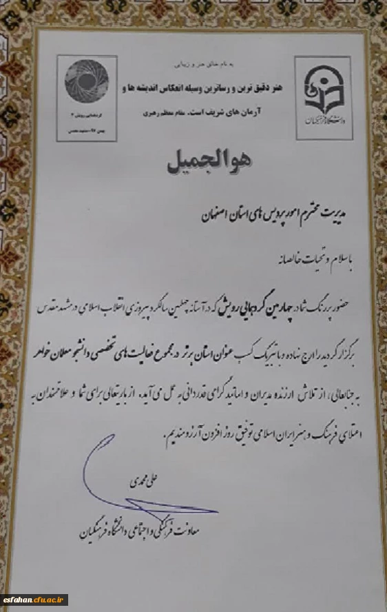 مدیریت امور پردیس های دانشگاه فرهنگیان استان اصفهان |
