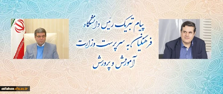 پیام تبریک رئیس دانشگاه فرهنگیان به سرپرست وزارت آموزش و پرورش