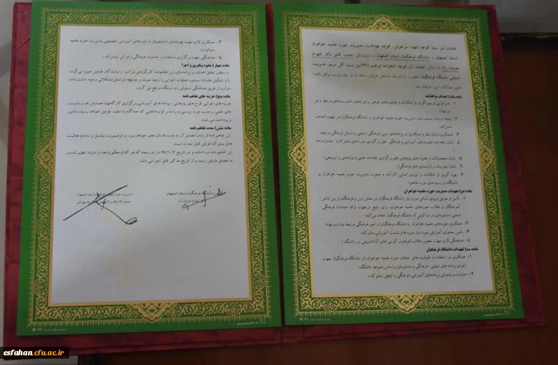 انعقاد تفاهم همکاری بین دانشگاه فرهنگیان استان اصفهان و مدیریت حوزه های علمیه خواهران استان