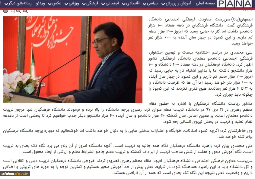 ریاست دانشگاه فرهنگیان استان اصفهان