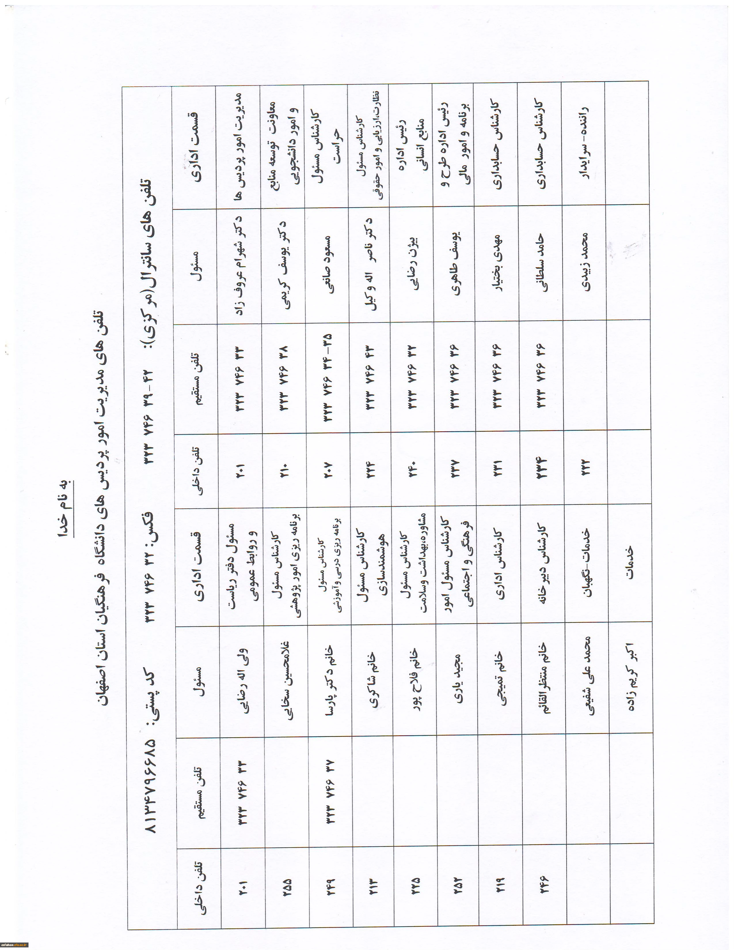 مدیریت امور پردیس های دانشگاه فرهنگیان استان اصفهان