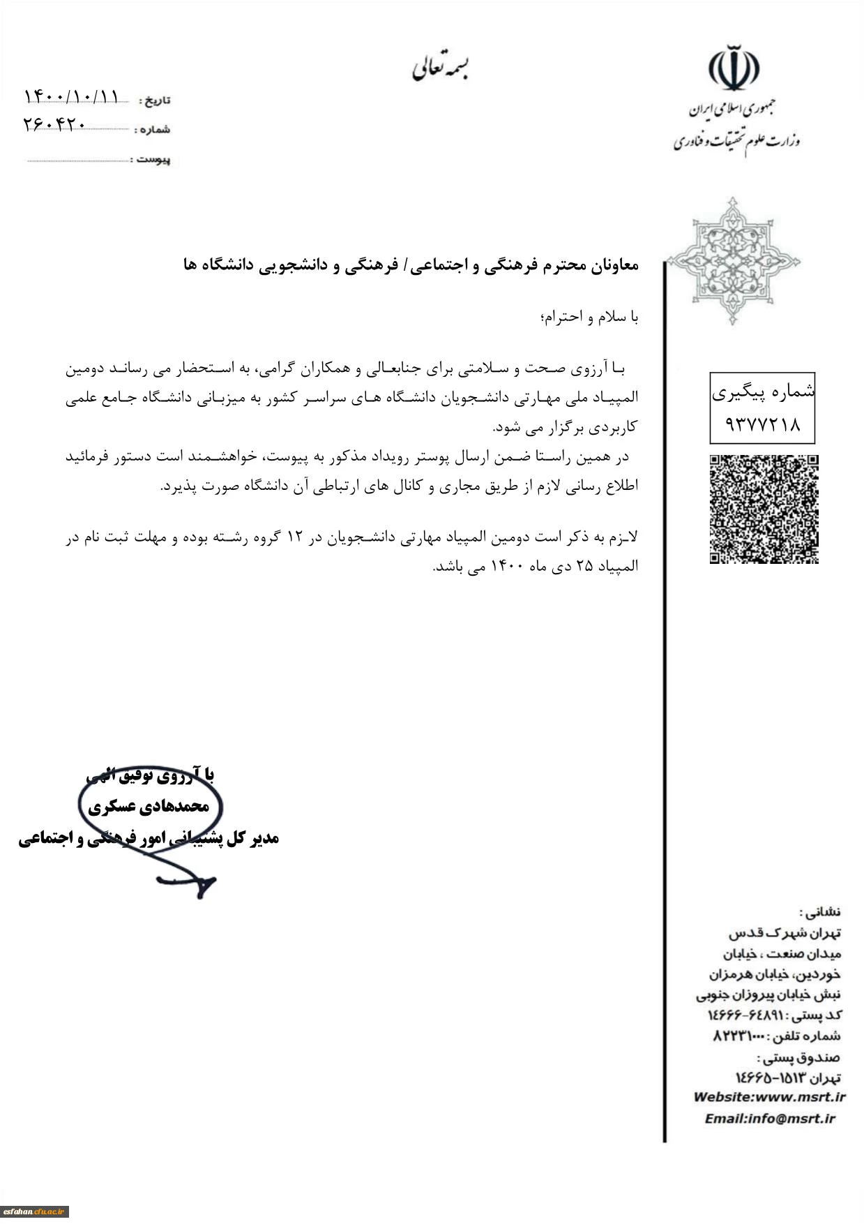 امتیاز دهید : دومین المپیاد ملی مهارتی دانشجویان دانشگاه های سراسر کشور 3 چهارشنبه 15 دی 1400 ساعت 10:29