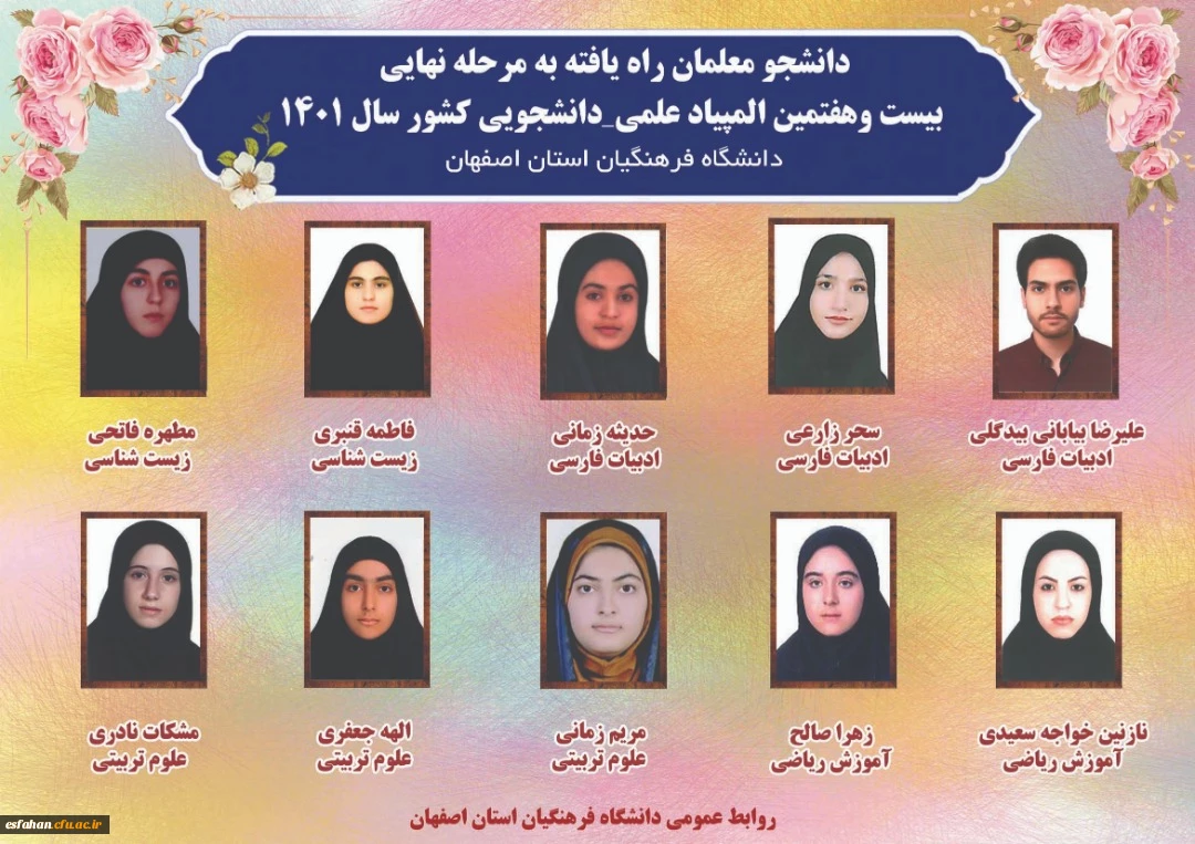دانشجو معلمان راه یافته به مرحله ی نهایی المپیاد علمی دانشجویی کشور 2