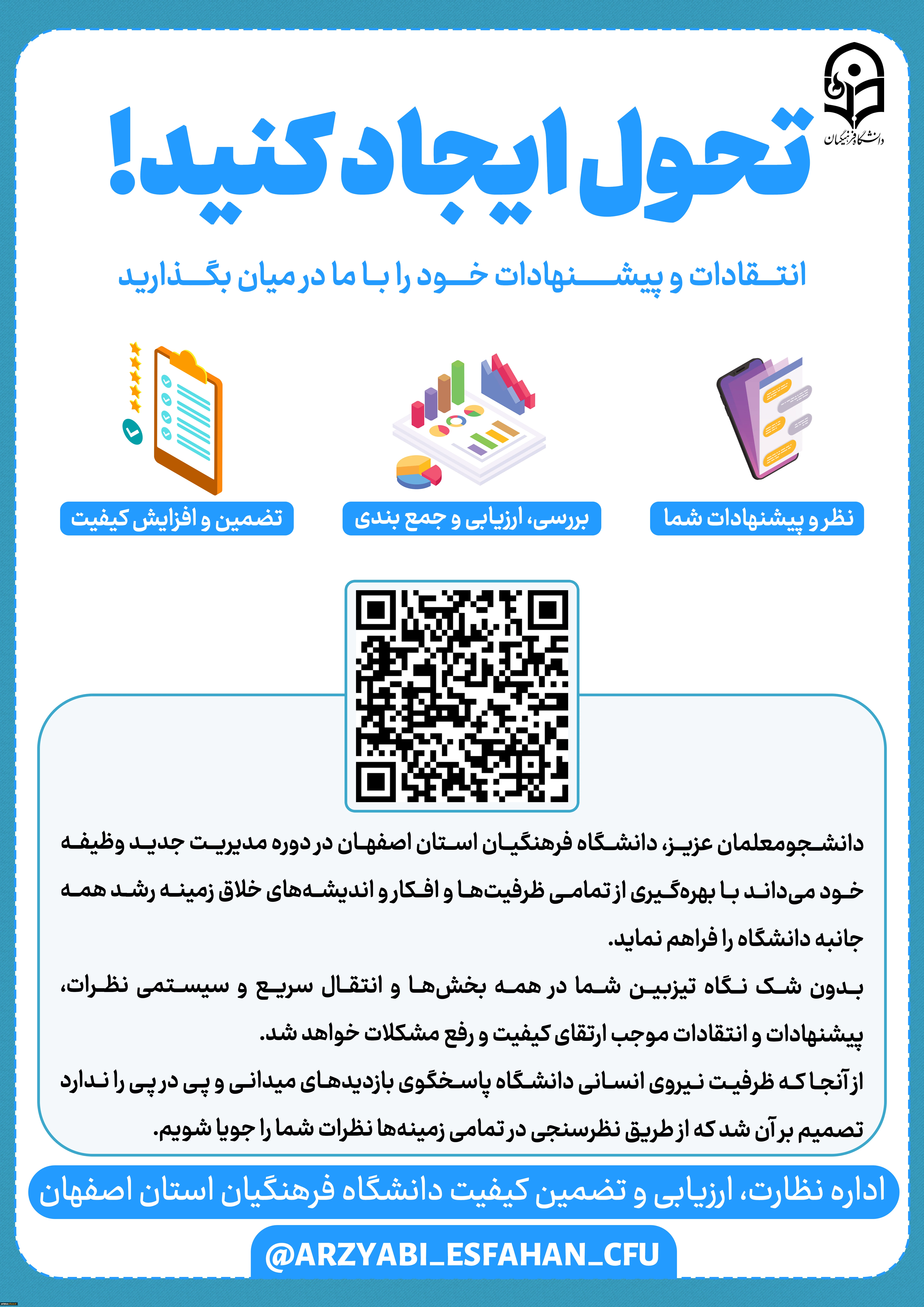 نظرسنجی، پیشنهادات و انتقادات دانشجویی، صنفی_رفاهی، آموزشی و... دانشگاه فرهنگیان استان اصفهان 2