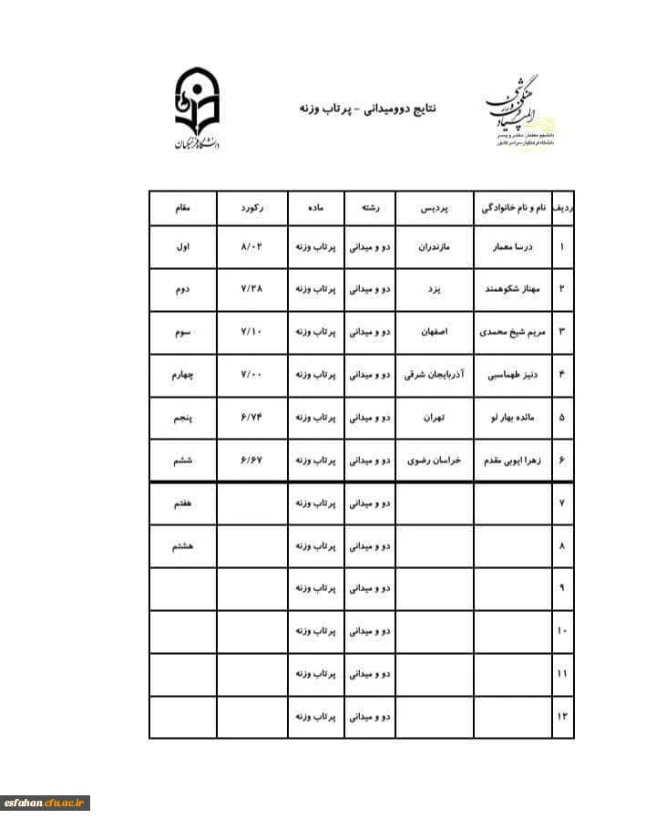 نتایج دو و میدانی _پرتاب وزنه (۱۹مردادماه) 2