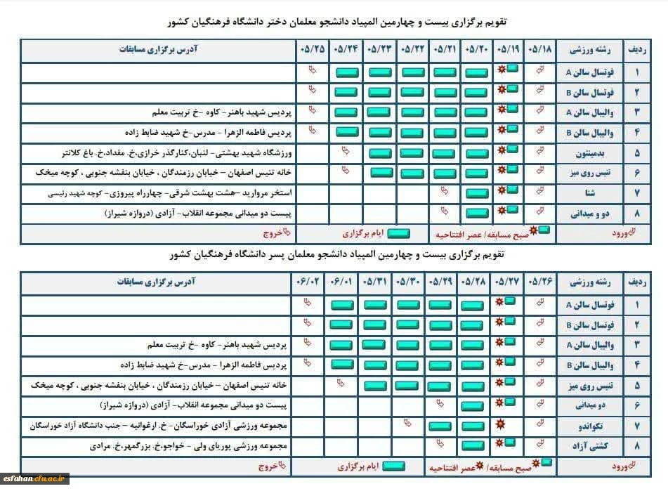 تقویم برگزاری مسابقات / المپیاد خواهران و برادران 2