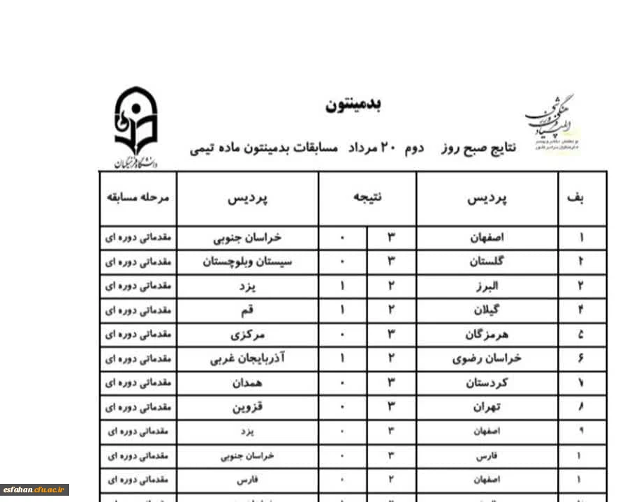 نتایج بدمینتون تیمی (20مردادماه) 3