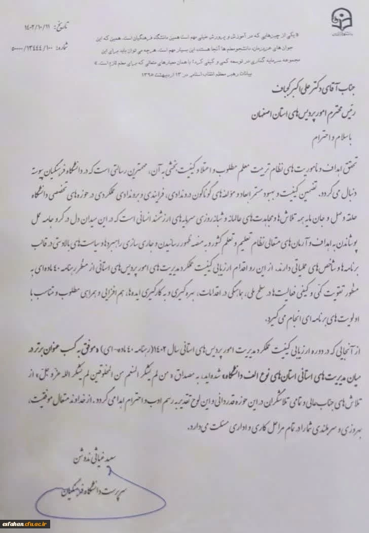 ریاست دانشگاه فرهنگیان استان اصفهان