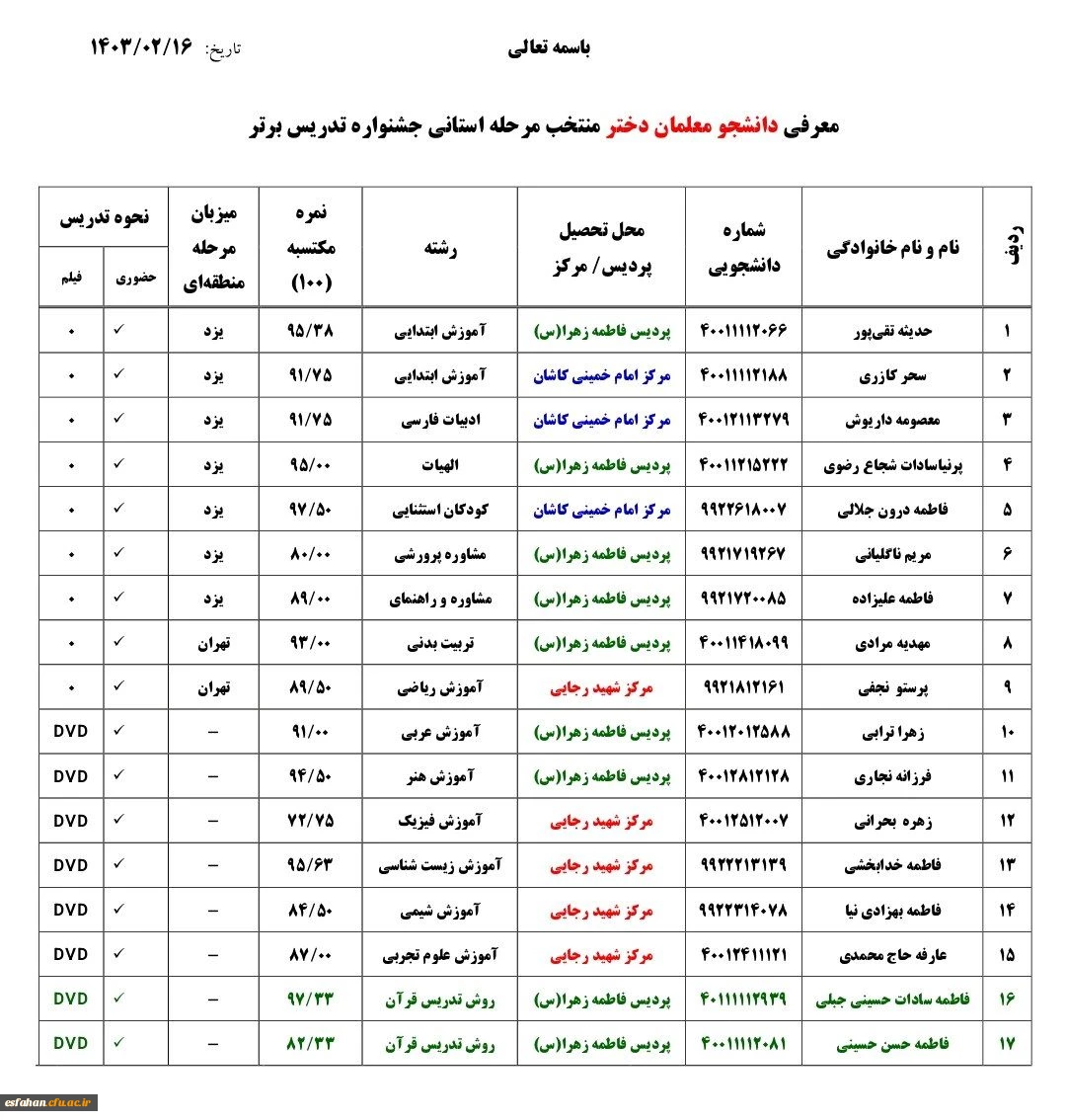 آسامی راه یافتگان به مرحله منطقه ای یازدهمین جشنواره تدریس برتر 3