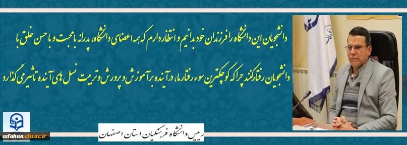 دانشجویان این دانشگاه را فرزندان خود بدانیم، و انتظار دارم که همه اعضای دانشگاه، پدرانه، با محبت و با حسن خلق با دانشجویان رفتار کنند چراکه کوچکترین سوءرفتار ما آینده بر آموزش و پرورش و تربیت نسل های آینده تاثیر می گذارد. 2