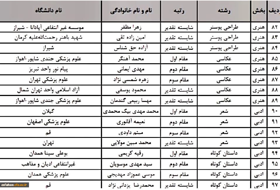مراسم اختتامیه سومین جشنواره ملی قرآنی، فرهنگی و هنری شهید آوینی با حضور معاون وزیر علوم و رئیس سازمان امور دانشجویان به پایان رسید. 10