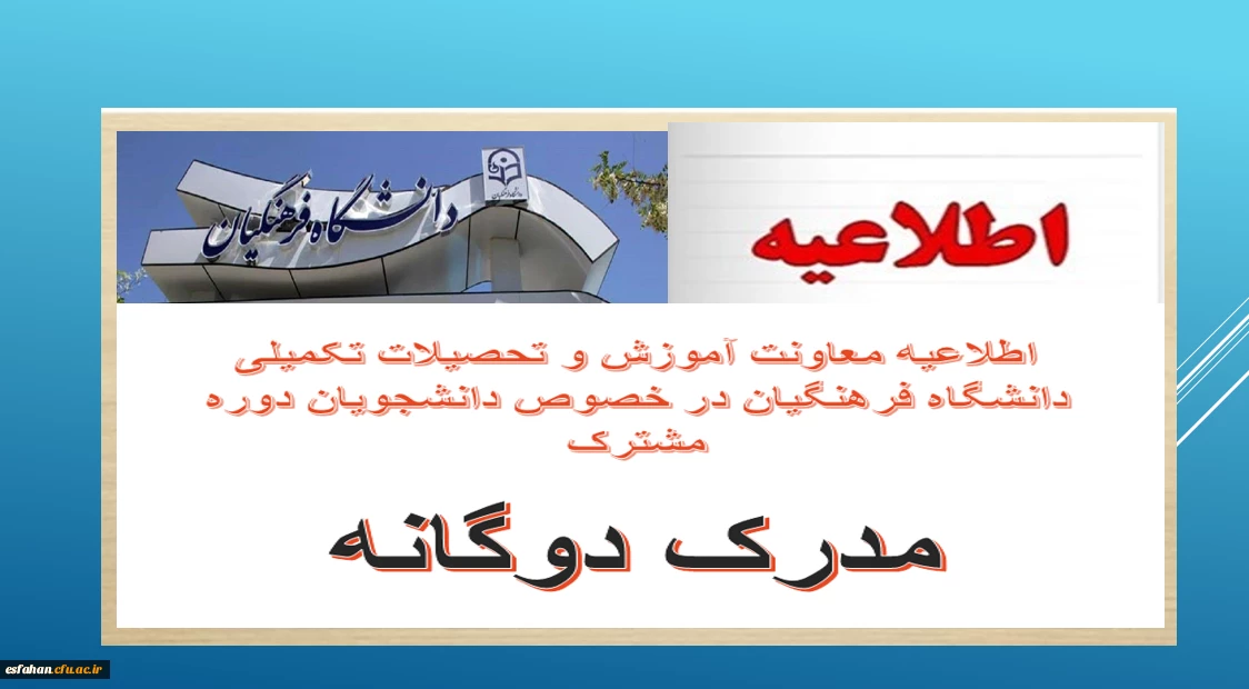 اطلاعیه معاونت آموزش و تحصیلات تکمیلی دانشگاه فرهنگیان در خصوص دانشجویان دوره مشترک (مدرک دوگانه) 2