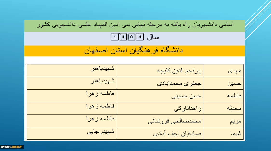 دانشجویان راه یافته به مرحله نهایی سی امین المپیاد علمی-دانشجویی کشورسال 1404 دانشگاه فرهنگیان استان اصفهان 2