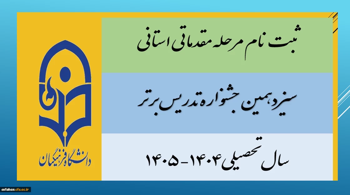ثبت نام مرحله مقدماتی/استانی سیزدهمین جشنواره تدریس برتر -سال تحصیلی۱۴۰۴-۱۴۰۵ 2