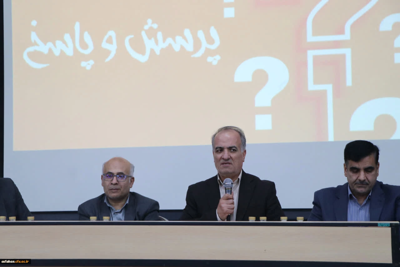 در ادامه نشست، علی اکبر پناهی،ریاست دانشگاه فرهنگیان اصفهان با تأکید بر نقش شجاعت در رسالت معلمی اظهار داشت: شجاعت معلم به معنای بیادبی یا جسارت نیست، بلکه مطالبهگری مؤدبانه، آگاهانه و سرافرازانه است که میتواند نسلهای آینده را پویا و مسئولیتپذیر تربیت کند. وی با اشاره به کمبود فضاهای آموزشی و خوابگاهی، از پیگیریهای انجامشده در سطح استان و جلسات برگزارشده با استاندار خبر داد و اعلام کرد بخشی از این کمبودها از طریق اجاره فضاهای موقت جبران شده است. پناهی ضمن عذرخواهی از دانشجویان بابت محدودیتها، تأکید کرد دانشگاه در حوزه تأمین تجهیزات خوابگاهی و رفاهی محدودیتی ندارد و نیازهای دانشجویان بهصورت جدی پیگیری خواهد شد.