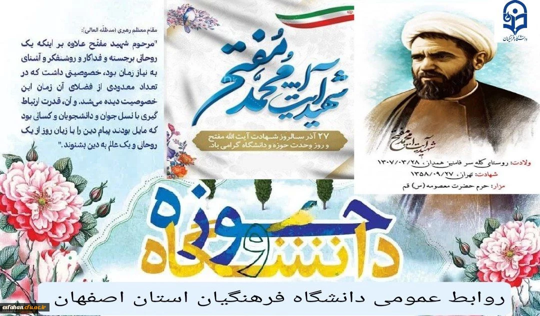 ۲۷ آذر، سالروز شهادت مجاهدی خستگی ناپذیر، شهید آیت الله مفتح و روز وحدت حوزه و دانشگاه گرامی باد
